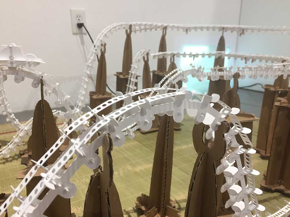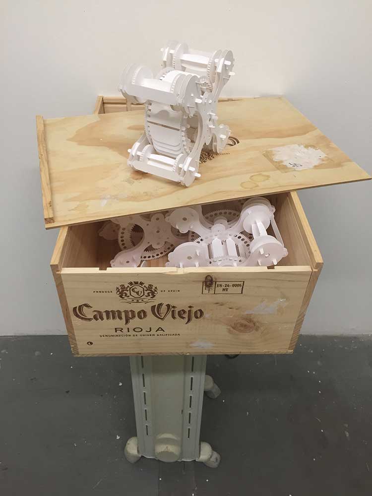 « Campo Viejo Rioja » Campo Viejo - Meaning “old field” in Spanish was found on a discarded wooden wine box in Brooklyn. The word sets up a body of work created during my three months residency at the NARS Foundation. Using discarded corrugated, photocopy paper, found furniture and material within the immediate vicinity of my surrounding I explored the Anthropocene where we have reified our natural surrounding in order to accommodate a sadly renewable man-made ecology through our city trashes.
